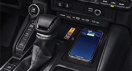 Practicidad al conducir, cuenta con un cargador inalámbrico(*) junto a un amplio espacio para que pongas tus objetos personales y disfrutes del camino. (*)Disponible en la versión 2.4T VX AT y 2.4T VX-L-AT